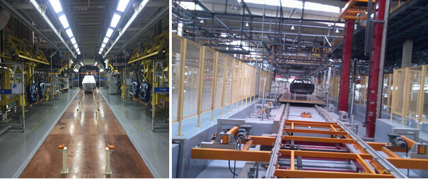 The slide conveyor is composed of slide plate and friction drive. The main drive uses the friction drive wheel to drive both sides of the slide plate, which pushes the front slide forward by this thrust, thus forming a continuous transport. The slide conveyor moves the body at the same time and carries on the assembly operation worker, makes the worker in the assembly process operation easier.