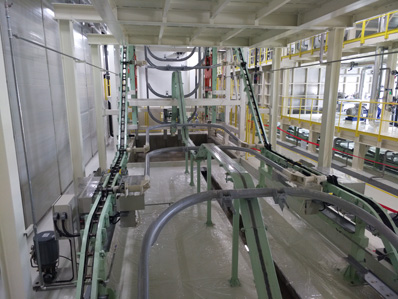 2. The large vertical climbing angle (45 °) of the soaking tank, the fast speed of entering the tank, and good exhaust shorten the length of pretreatment and electrophoresis equipment, as well as reduce the cost of pretreatment equipment.