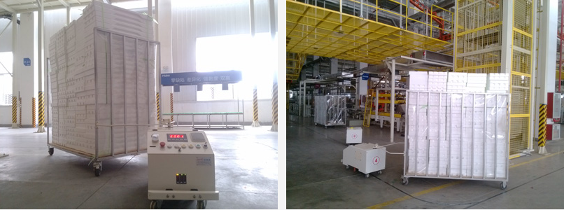 Haier is the one of the largest global household appliance providers. This AGV project is used for Zhengzhou Haier air conditioning assembly workshop, including to transport and distribute internal and outside of the machine, as well as the two fitting material transportation and delivery, and will automatically use the tooling car back to the warehouse. AGV adopt the magnetic channel navigation system and realize unmanned automatic transportation through the control system and other management system instant communication, The project is the best choice to be used in the large household appliances industry and other industries to enhance the competitiveness, reduce labor costs and improve the warehouse efficiency.