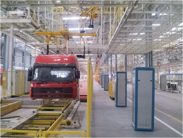 該滑撬輸送系統(tǒng)從涂裝車間轉(zhuǎn)掛工件,載碼后,自動(dòng)行走進(jìn)入總裝PBS庫區(qū),自動(dòng)分類存儲(chǔ)到不同的存儲(chǔ)線路內(nèi)。按生產(chǎn)調(diào)度指令自動(dòng)調(diào)取工件,通過內(nèi)飾線下料升降機(jī),至車身內(nèi)飾線,空撬體返回涂裝上料區(qū)等待上件。存儲(chǔ)區(qū)設(shè)置一條可以雙向運(yùn)行的通道,作為快速通道和倒車通道。