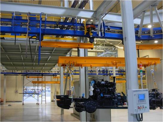 中涂色漆罩光積放輸送系統(tǒng): 中涂、色漆、罩光線機(jī)運(yùn)采用寬推桿積放式懸掛輸送系統(tǒng),涂裝工件在積放輸送線上,按照工藝要求,完成各涂裝工序,并可以實(shí)現(xiàn)中涂烘干室及面漆烘干室零件的排空功能,以及零件和成品零件的緩存編組功能。