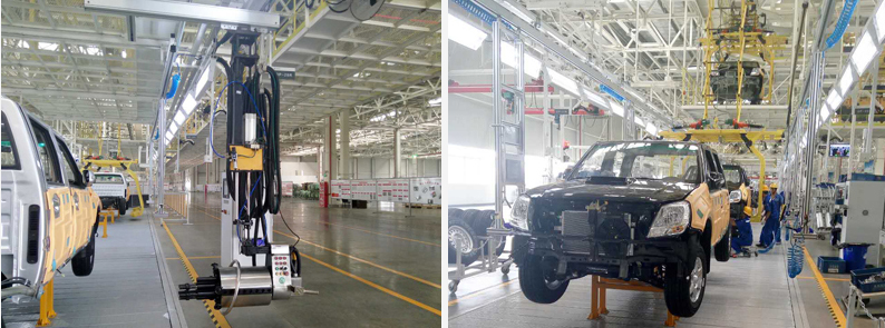 北汽福田汽車股份有限公司在異地?cái)U(kuò)建皮卡和SUV生產(chǎn)線(佛山),為總裝車間技術(shù)改造項(xiàng)目。本項(xiàng)目為我公司總承包項(xiàng)目,包括內(nèi)飾線、底盤線、綜合線、工藝吊架及照明、貨箱分裝臺(tái),儀表分裝臺(tái)、后橋分裝臺(tái)、尾氣抽排室、KPK、行車、工藝二次管線、全車供電系統(tǒng)、全系統(tǒng)集成。同時(shí),包括現(xiàn)場管理、項(xiàng)目協(xié)調(diào)等管理工作。主要參數(shù):產(chǎn)品:薩普、P201、U201。標(biāo)準(zhǔn)年工作時(shí)基250天,雙班工作制,每班8h,生產(chǎn)綱領(lǐng)80000輛/年