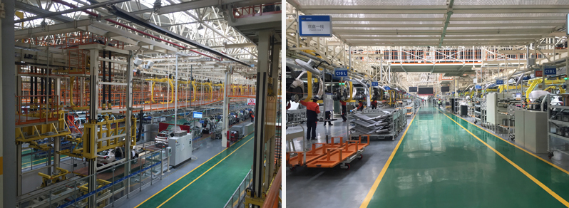 晉中吉利總裝為我公司總承包項目,包括PBS線、內(nèi)飾裝配線、底盤線、最終裝配線、車門線、OK線、淋雨線、商檢線、發(fā)動機(jī)分裝等,也包括工藝吊架及照明、KPK、工藝二次管線、全車間供電系統(tǒng)、全系統(tǒng)集成。輸送線配置有CS控制系統(tǒng)。同時配置有信息管理系統(tǒng)。車型信息控制總體功能:PBS線車身信息通過超高頻電子標(biāo)簽進(jìn)行管理,為確保系統(tǒng)運行可靠,在轉(zhuǎn)掛處都設(shè)有12寸觸摸屏,也可人工錄入車型信息,錄入采用無線條碼掃描槍掃取整車流程卡條碼。整體配置有ANDON系統(tǒng)、AVI系統(tǒng)等。