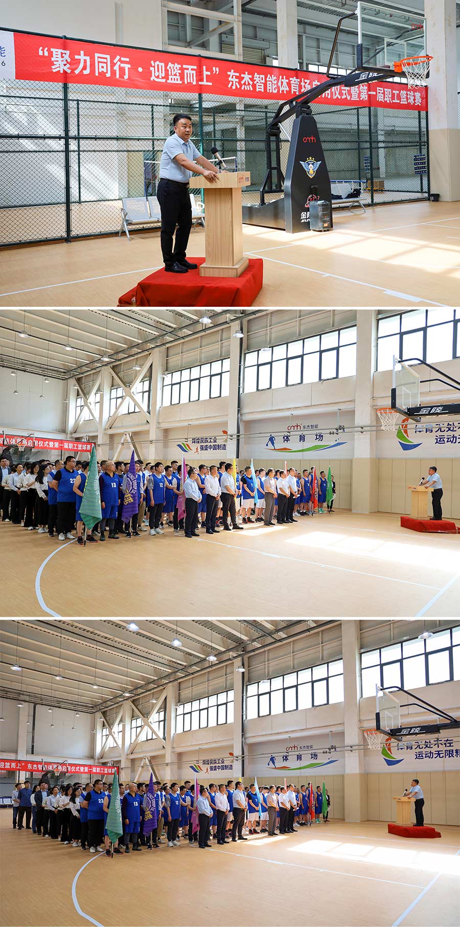 近日,一場盛大的“聚力同行·迎籃而上”東杰智能體育場啟用儀式暨第一屆職工籃球賽決賽在東杰智能總部體育場璀璨啟幕?;顒?dòng)由集團(tuán)營銷中心副總經(jīng)理侯晉雷先生主持,集團(tuán)總經(jīng)理王振國先生攜高管團(tuán)隊(duì)——副總經(jīng)理朱忠義、郝志勇,董事會(huì)秘書張新海,以及總經(jīng)理助理劉云峰等親臨現(xiàn)場,共同見證了這一歷史性時(shí)刻。